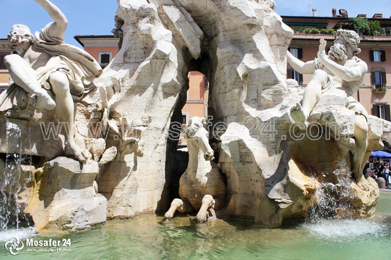 کلیسای سانتا نیزه و کاخ پامفیلی در ضلع غربی، سان جاکومودلی سپانیولی در ضلع شرقی میدان ناوونا قرار دارد. همچنین در محور طولی میدان، آبنمای چهار رودخانه برنینی با محافظین در انتهای میدان قرار دارند.