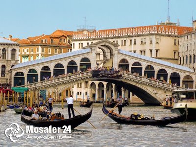 گندولا نام مشهورترین قایق سنتی شهر ونیز است که اغلب جهت رفت و آمد جهانگردان، مراسم ازدواج، سوگواری و سایر جشن ها از آن استفاده می شود. بیشتر گندولاها با صندلی های مخملی و قالیچه صد درصد ایرانی تزئین شده اند. پل حسرت یا Rialto Bridge یکی از چهار پل احداث شده روی کانال اصلی و بزرگ ونیز یا همان Grand Canal است که قدیمی ترین و مشهورترین آن ها نیز محسوب می شود. این پل در سال 1588 میلادی ساخته شده است. جالب است بدانید که قبل از احداث این پل سنگی، این پل چوبی بوده است و بعد ها به خاطر کثرت رفت و آمد، آن را مجددا با سنگ ساختند. جشنواره یا کارناوال ونیز همه ساله در مرکز شهر ونیز برگزار می شود و توجه هزاران نفر را به خود جلب می کند. در این جشنواره که همه ساله از ماه فوریه آغاز و تا اواخر ماه مارچ ادامه می یابد، مردم بر اساس یک سنت قدیمی، ماسک هایی با طرح ها و رنگ های متنوع بر صورت می زنند که این ماسک ها از جنس چرم یا کاغذ مخصوصی هستند که با فنون خاصی در خود ونیز ساخته می شوند و یکی از مهمترین سوغاتی های این شهر و سمبل آن نیز محسوب می شوند. این ماسک ها همگی دست ساز هستند و در تزئین آن ها گاه از جواهر هم استفاده می شود. جالب است بدانید که هرکدام از این ماسک ها اسم خاصی دارند. مثلاً ماسکی که تمام صورت را بپوشاند و در واقع هویت فرد را مخفی نگه دارد، (باوتا Bauta ) نام دارد یا مثلا ماسکی که ابتدا در فرانسه اختراع شد و بعد به ونیز آمد و اغلب زن ها آن را در ونیز بر صورت می زنند، (مورِتّا Moretta ) نام دارد که ماسکی بیضی شکل با مخمل سیاه رنگ است. همچنین، (لاروا Larva ) نام ماسک دیگری است که عمدتا سفیدرنگ است و با کلاه و عبای خاصی معمولا ست می شود.