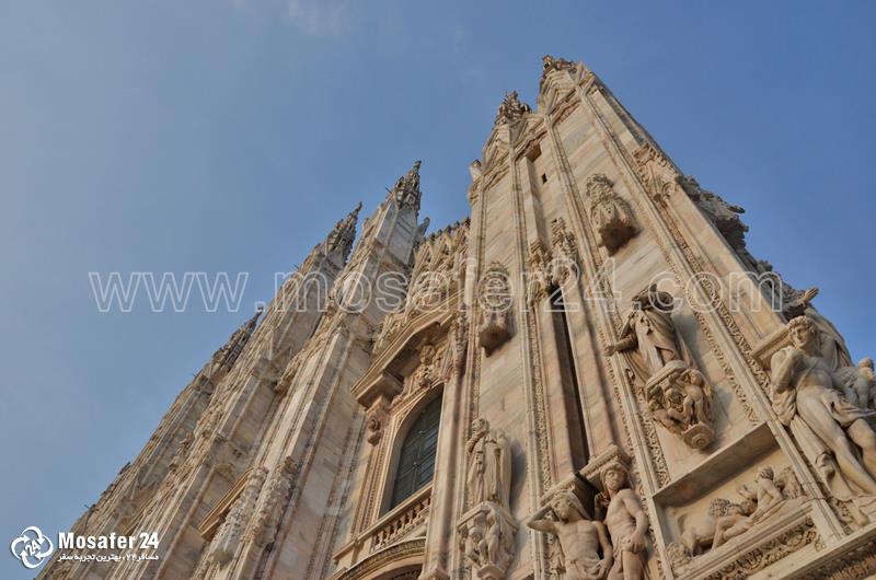 میدان دلدوئومو، میدان مرکزی میلاناز میدان‌های اصلی و جالب این شهر می‌توان از میدان دلدوئومو نام برد. از دیدنی‌های شهر میلان کلیسای دومو است که به سبک معماری گوتیک ساخته شده است و تئاتری بنام (Teatro della Scala) که به زبان ایتالیایی تئاتر پلکانی معنی می‌دهد. این تئاتر باشکوه در سال 1778 میلادی ساخته شده و برای 3600 نفر تماشاچی جا دارد و روبروی مجسمهٔ لئوناردو داوینچی در میدان Palazzo della Scala قرار دارد. مجتمع نمایشگاهی تجاری فیِرا میلانو (Fiera Milano) که در حومهٔ شمال غربی شهر ساخته شده‌است، بزرگ‌ترین پروژهٔ ساخت و ساز در اروپا و خود مجتمع بزرگ‌ترین تجاری نمایشگاهی دنیا به حساب می‌آید. این مجتمع در آوریل سال 2005 میلادی افتتاح شد.