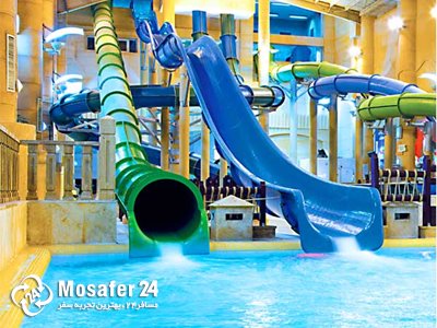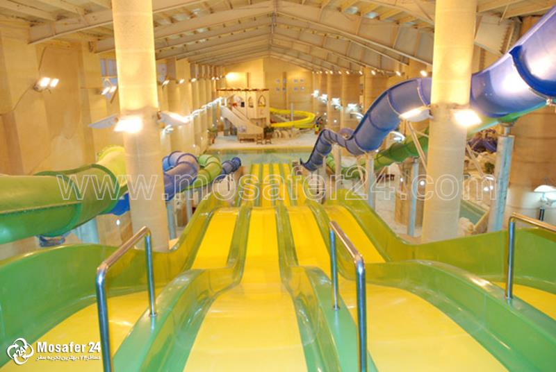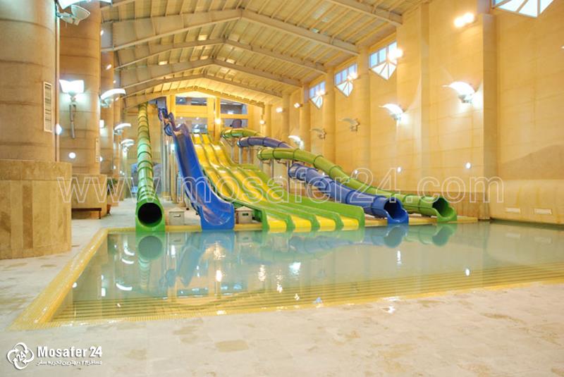 سرسره های آهسته، سرسره های سرعتی، سرسره پیچشی، سرسره موج، سرسره تاپسی توروی، سرسره تویستر، چاله فضایی، استخر موج، رودخانه آرام و خروشان، منطقه بازی کودکان، استخر برکه، سونای خشک و بخار، جکوزی سرد و گرم، رستوران، کافی شاپ، فروشگاه لوازم ورزشی، حمام ترکی و …