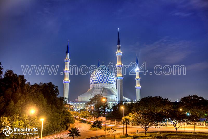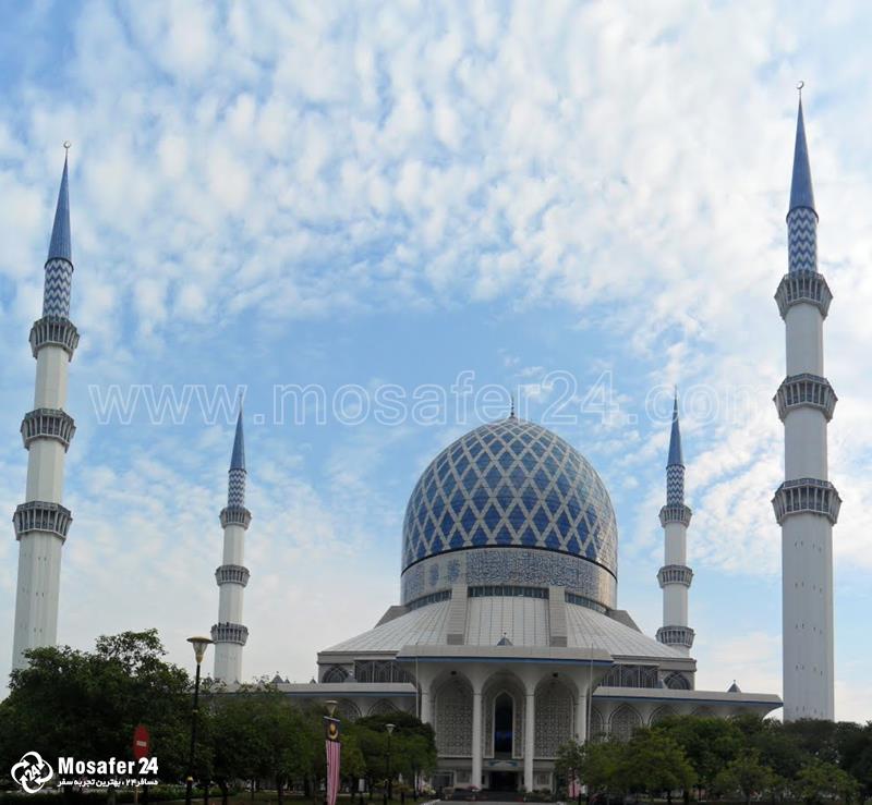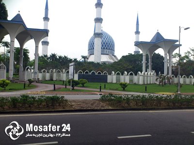 مسجد آبی یکی از باشکوه ترین مساجد سراسر دنیاست و حدود 142 متر ارتفاع و چهار مناره با ارتفاع حدود 140 متر دارد. این مسجد ظرفیت پذیرش 24 هزار نمازگزار را دارد. بیشتر مسافرانی که به کوالالامپور سفر می کنند، اعم از مسلمان و غیر مسلمان، از این مسجد نیز دیدن می کنند. خوب است بدانید مسوولان مسجد اجازه عکاسی را به گردشگرها می دهند.