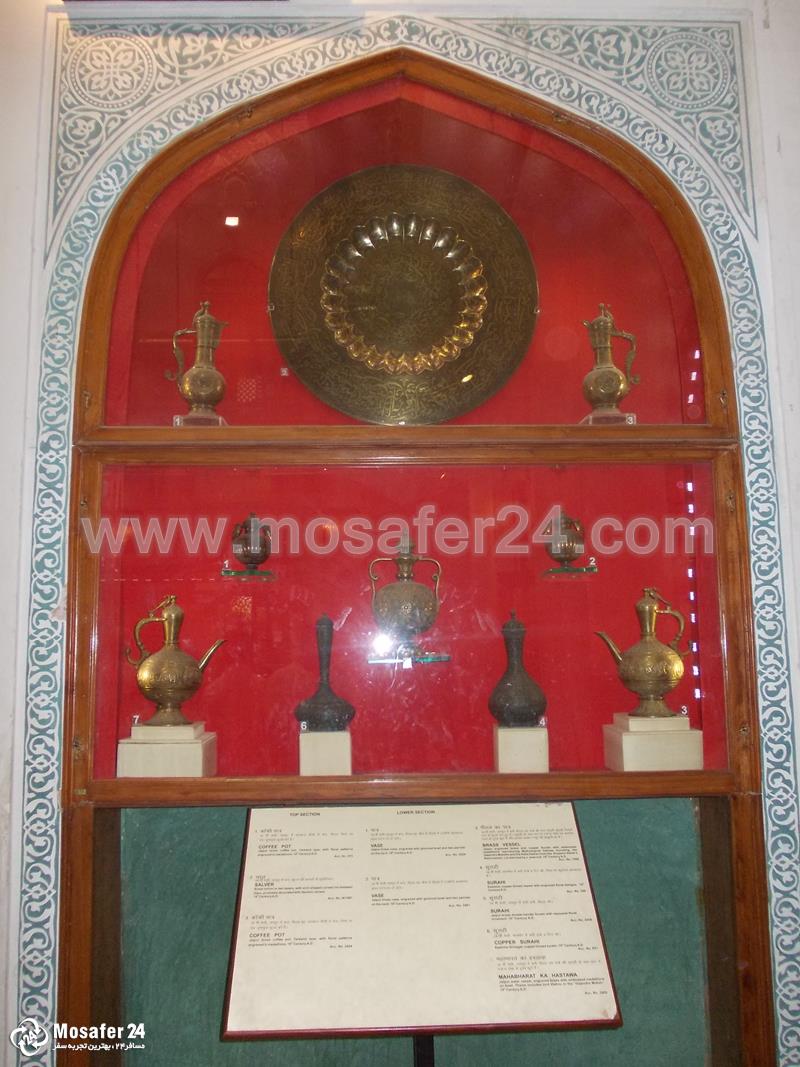 در این موزه از ابزار و ادوات جنگی گرفته تا آلات موسیقی، انواع ظروف و زیور آلات، نقاشی ها، فرش ها، مجسمه هایی از عاج و سنگ و فلز، قطعات کریستالی زیبا، مجسمه خدایان و مومیایی و بر روی برخی از ظروف چینی شعر و خط پارسی خود نمایی میکند که از برترین دیدنیهای هندوستان و جاذبه های گردشگری جیپور است.
