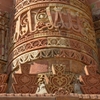 تزئینات و نقوش هر پنج طبقه متفاوت هستند. پایین‌ترین طبقه لبه‌های گوه مانندی دارد که یک درمیان نیم‌ستون‌های مدوری در میان آنها قرار گرفته‌است. گرداگرد طبقه دوم را برآمدگی‌های مدوری پوشیده‌است و طبقه سوم ستاره‌ای شکل است. طبقه چهارم و پنجم به صورت ساده‌ای گرد و استوانه‌ای هستند.