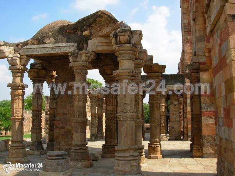 در صحن اصلی مسجد ستون فولادی بزرگی مربوط به قرن پنجم میلادی وجود دارد که عامه، حلقه کردن دست از پشت، دور این ستون را خوش یمن می‌دانند. قطب منار یکی دیگر از دیدنیهای دهلی هند به شمار میرود.